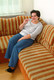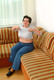 Мохнатая Чешка Тэрэзка позирует на диване