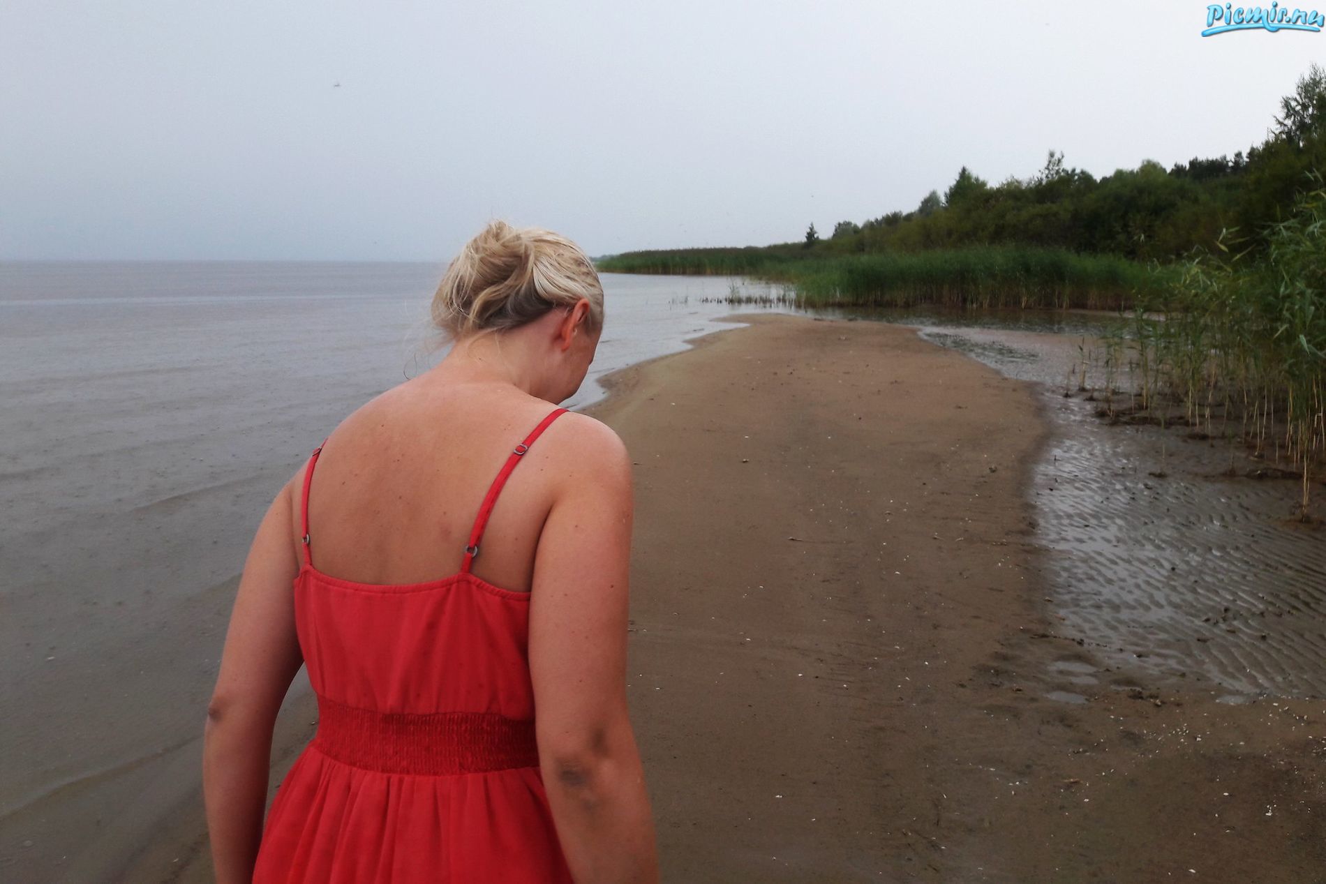 Фигуристая милфа гуляет голышом по безлюдному берегу