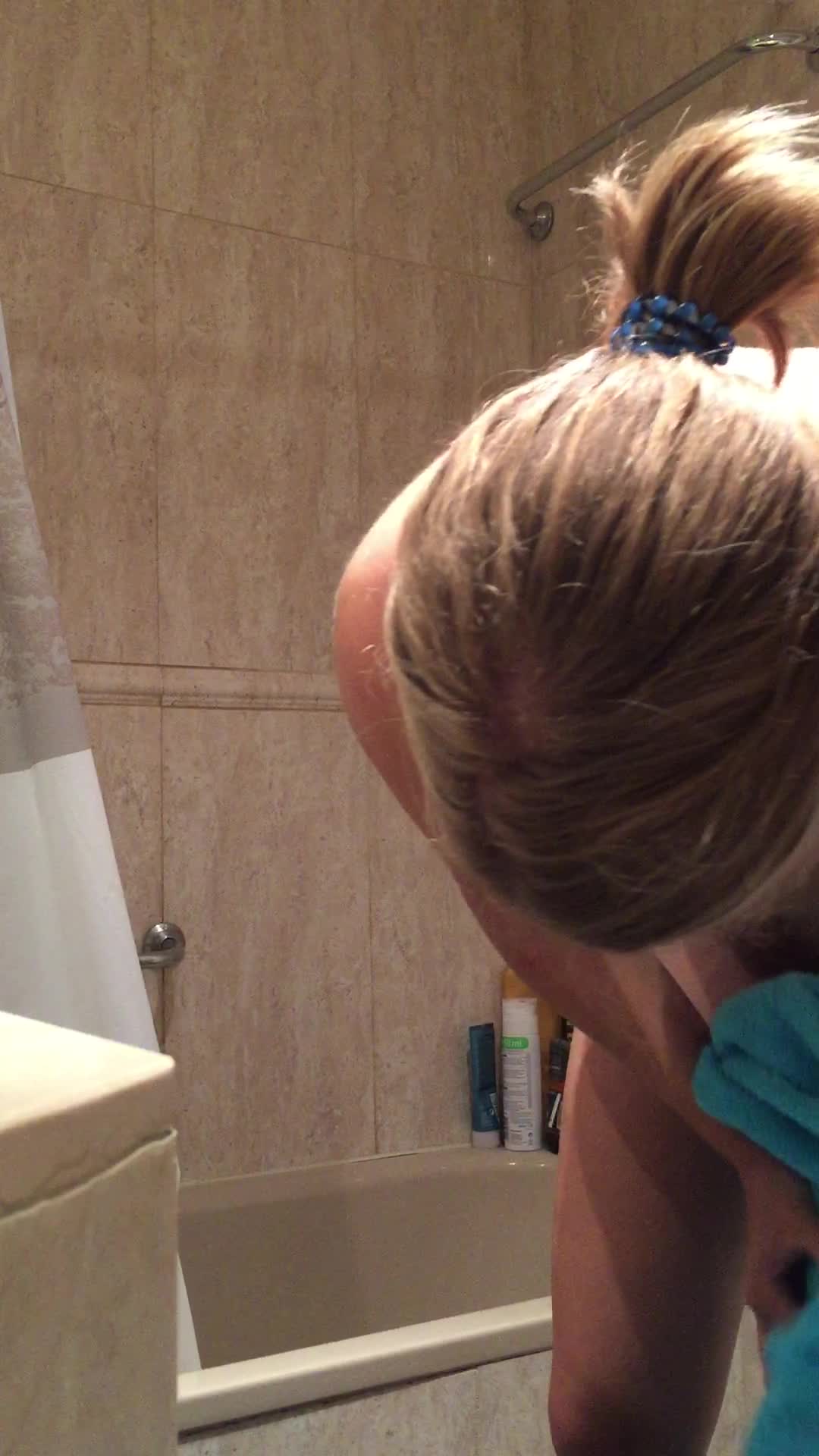 а вот и племянницу жены мужик поймал в душе, молоденькая с хвостиком на голове